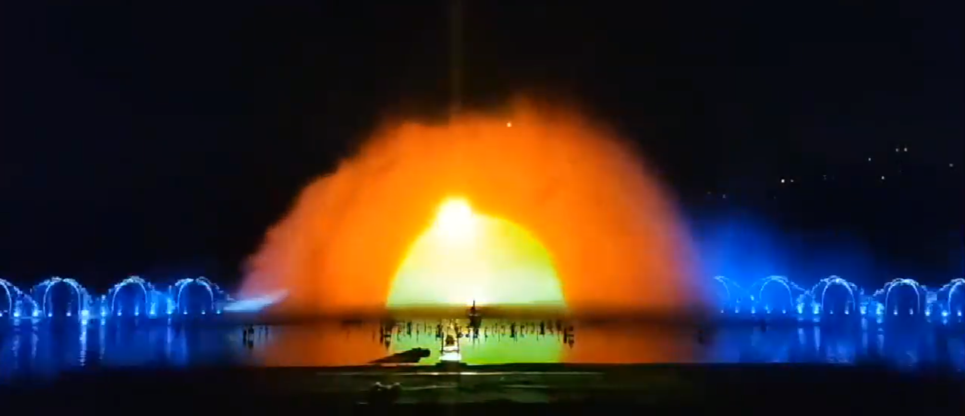 南湖公园给其设计规划了水幕电影+激光秀+时光矩阵, 水幕电影是用激光做辅助,突出水幕上水的流动质感,然后再利用激光表演点、线、面立体多方位,光束灯整体亮化,组成音乐、激光相结合的立体水上效果,这不仅给人以不同感官上的刺激,还让观赏者体验到绝无仅有的开放式水景意境,可谓是集水幕电影、音乐、激光、为一体的超级光影水秀。