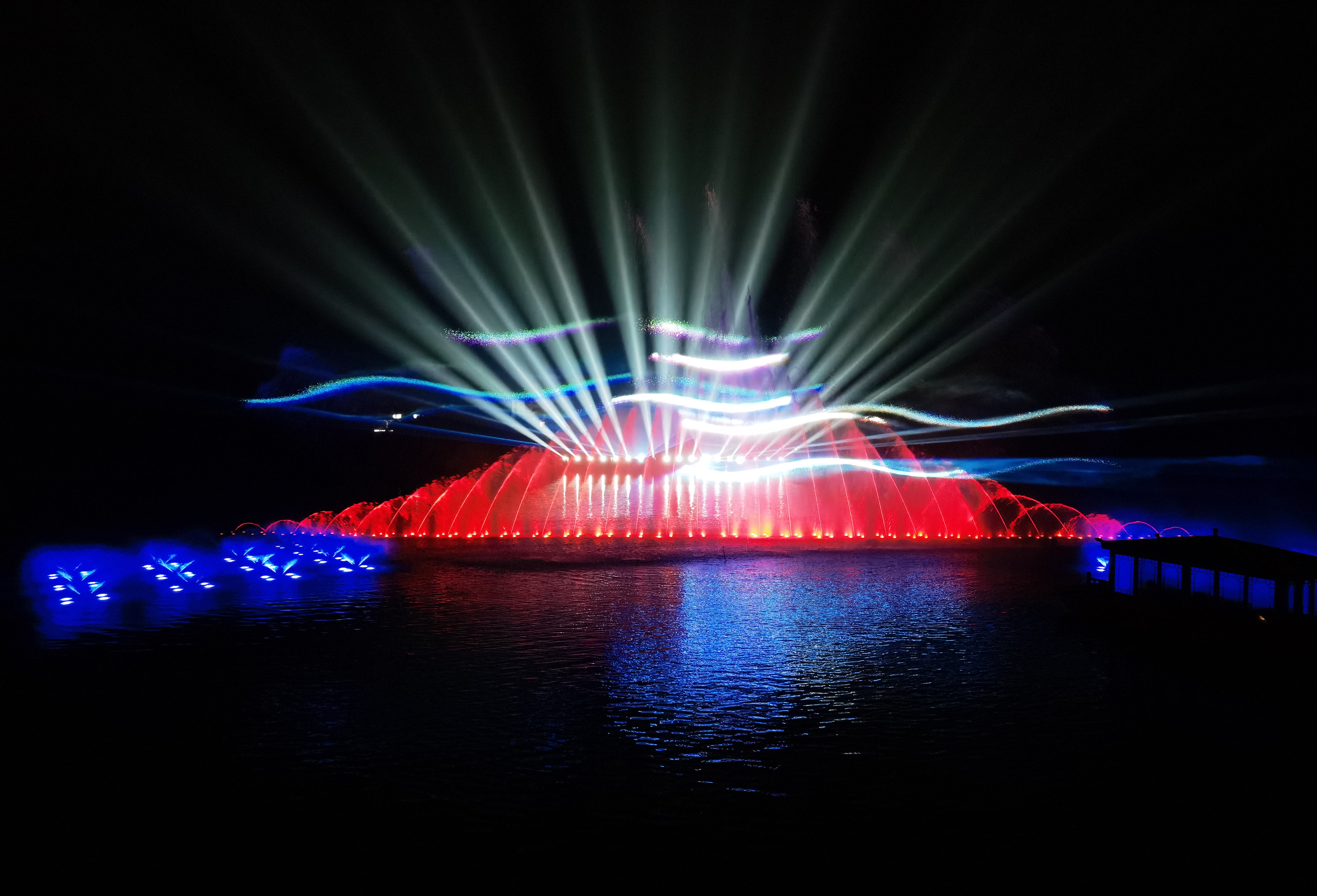 4、光影秀配置2台大型激光灯,16台时光矩阵,可单独使用,亦可与水幕、演出整体融合;