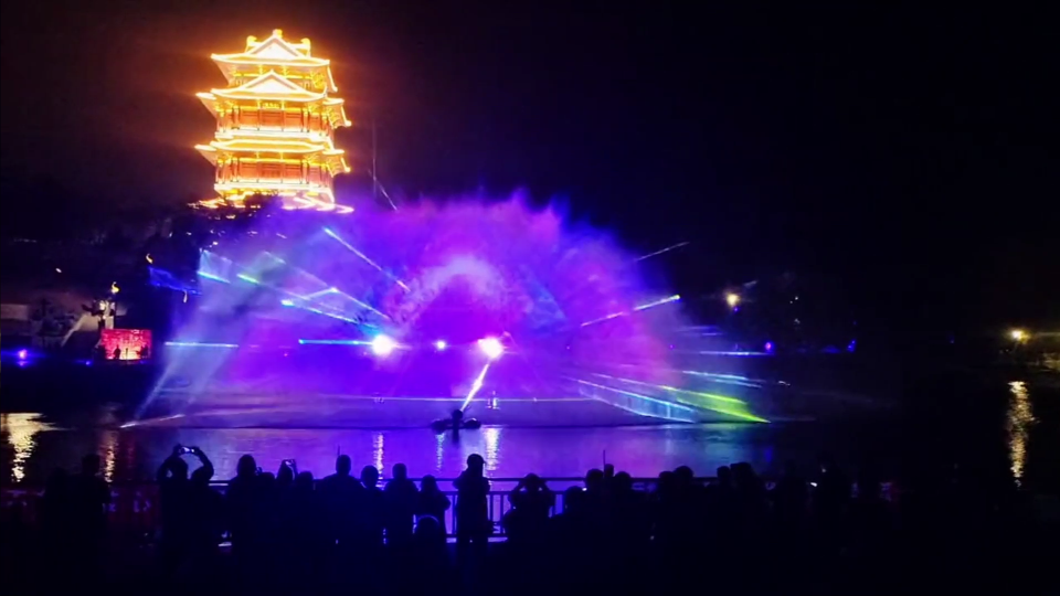 法库白鹤楼水幕光影秀采用超大水幕,投影距离70米,投影画面16*12米,现场水幕电音秀气势宏大,节奏动感,人流不息。带来别样的精彩!