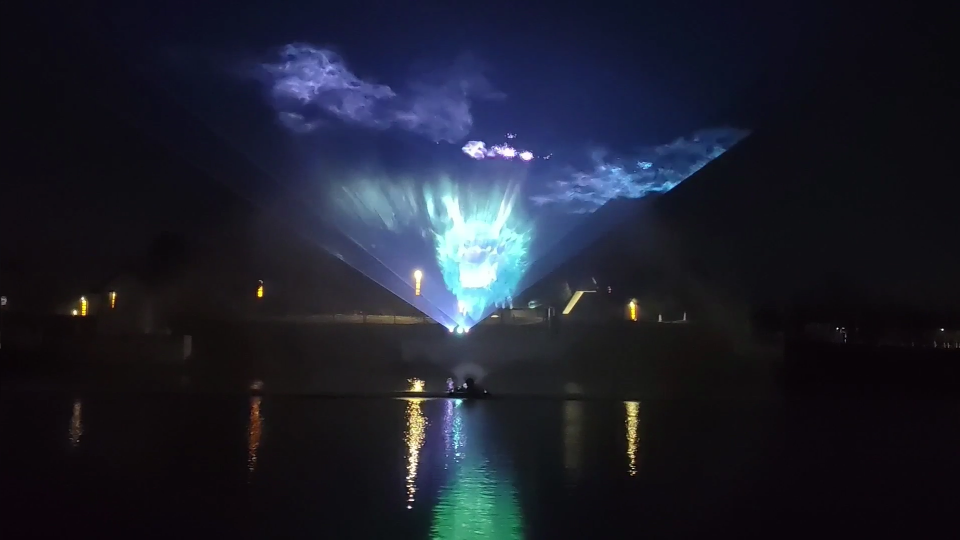 招虎山风景区采用50*15超大水幕,加上激光灯,喊泉等文旅夜游项目,氛围满满,人气爆棚。