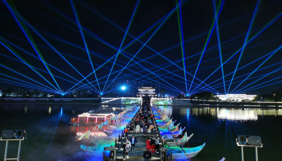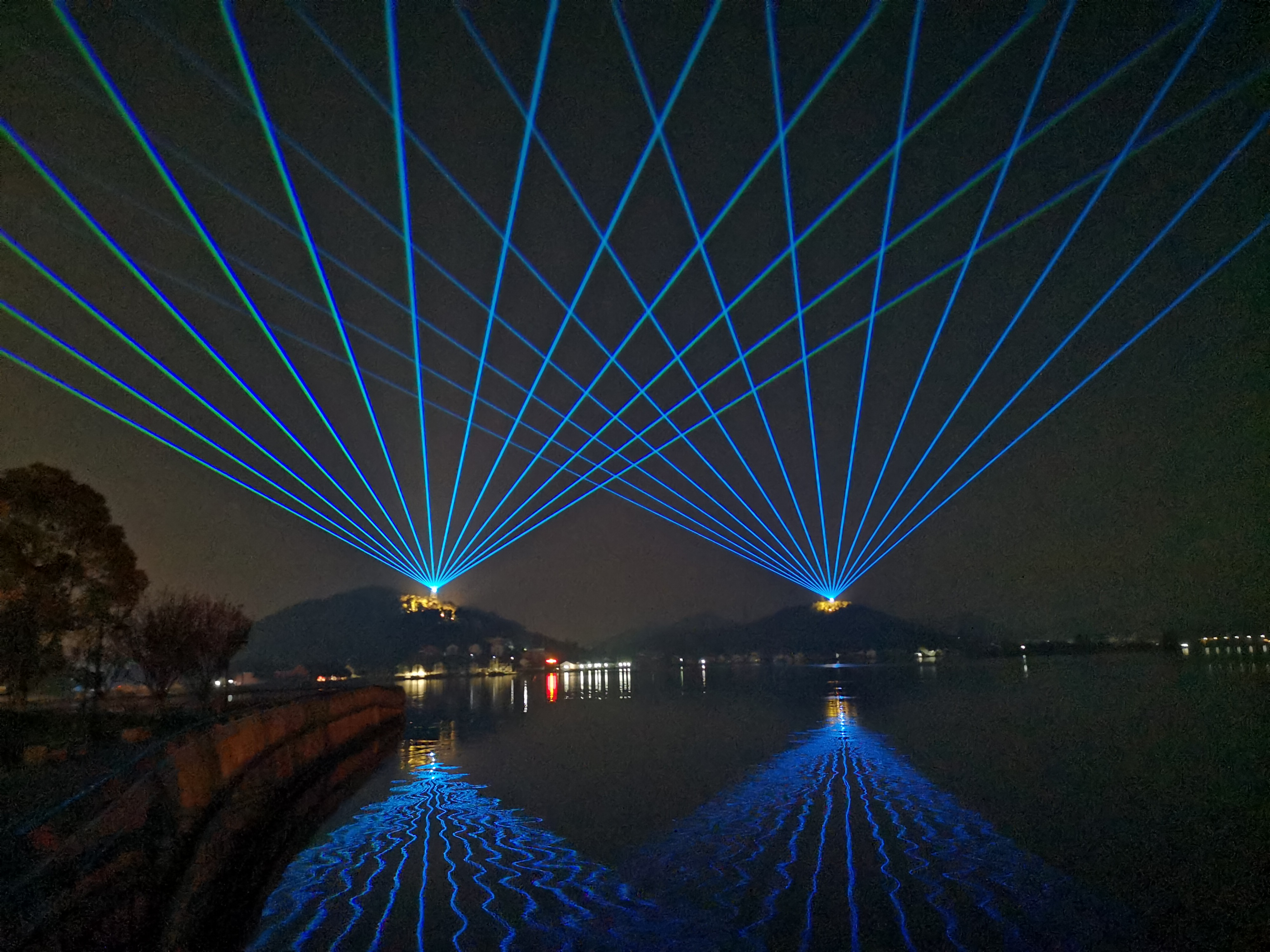 地标激光灯是一种用于照亮地标建筑物的特殊灯光装置。它利用激光技术发射出高强度的激光束,通过精确的控制和调节,将激光束聚焦在地标建筑物上,形成一道明亮而独特的光束,使地标建筑物在夜晚变得更加引人注目和壮观。