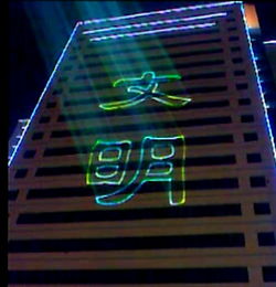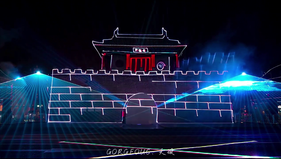 这里说的激光雕刻是激光灯的一种应用形式,一种使用激光束对物体进行刻划的技术。以呈现物体为载体,运用激光投影技术在载体外表形成明暗有序、特效感强的夜间视觉景观,不破坏原有生态环境,在夜色的渲染下,投影画面逼真,视觉效果震撼,科技感十足。