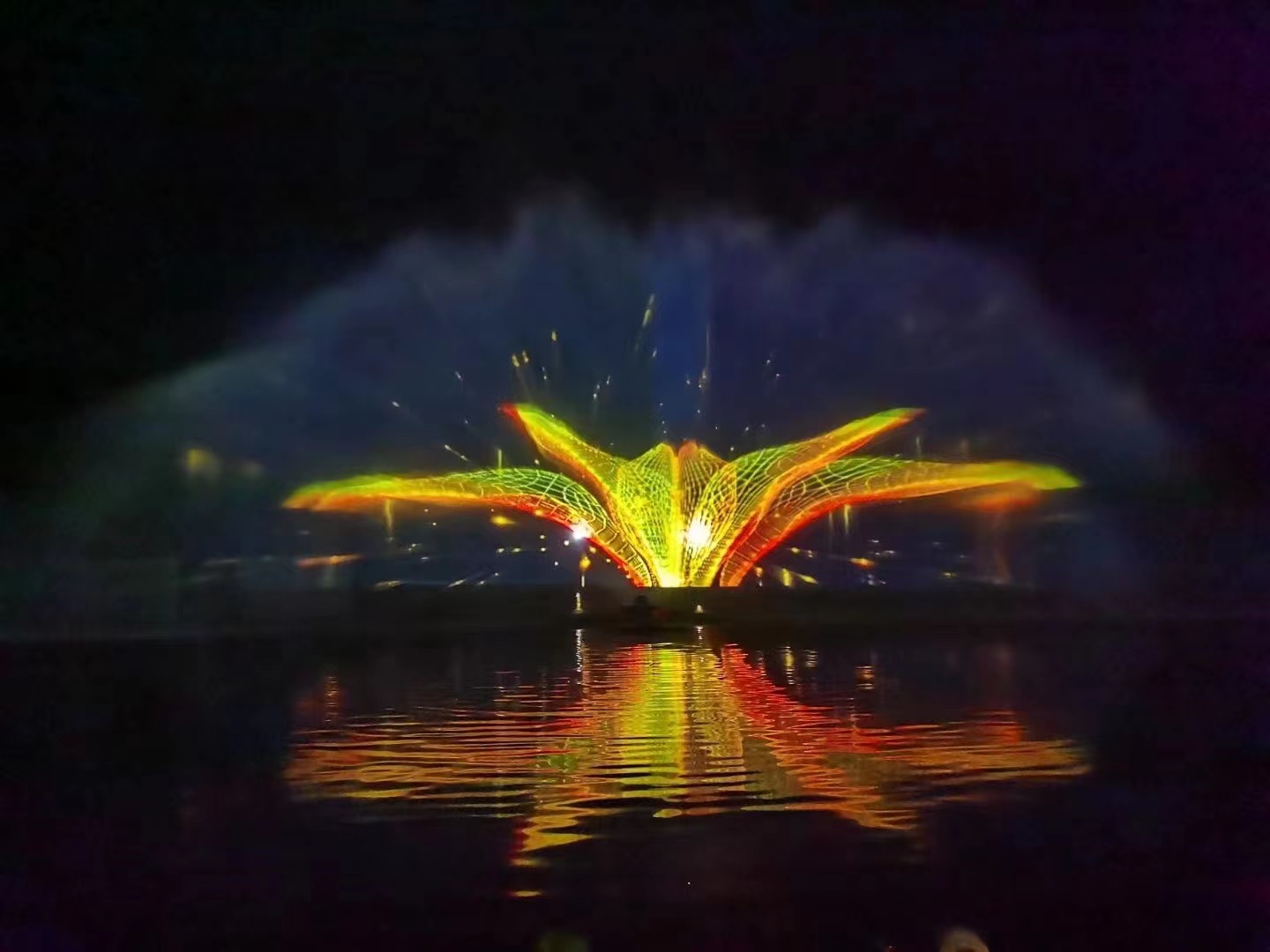 水幕电影主要由水幕发生器、投影机(放影机)组成。水幕高达 20 余米,宽 30-50 米,片源素材丰富,影视效果奇特、新颖且是夜间经济的广告宣传重要途径。各种广场及阔旷的水面均可安装水幕电影。