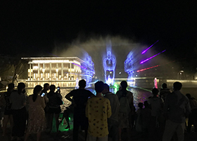激光水幕电影是指用激光投射在水幕上播放电影和图像,由激光系统和水幕系统组成。该技术运用水力学、光学、声学等多种科学原理,结合多种现代科学系统所制造的一种立体型、动感型的传播媒介。相较老式电影放映模式,其动感逼真的艺术形式、多变华丽的呈现模式广泛被观众所赞赏。